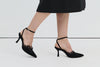 The indy heel is finished with a delicate eyelash lace detail offering a touch femininity. An elevated option for special events.